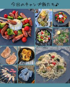 マルチグリドルを活用して、鮭のホイル焼き、チーズフォンデュやタコとエビのアヒージョ、アヒージョの残りを活用したペペロンチーノなど、多彩なキャンプ飯を楽しみました😋